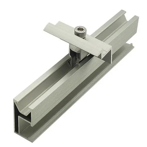 太陽能夾是另一種鋁制配件,用于將太陽能電池板固定到鋁制軌道上。夾具通常由鋁合金制成,具有高強度和耐腐蝕性,可以確保太陽能電池板不會損壞或扭曲。